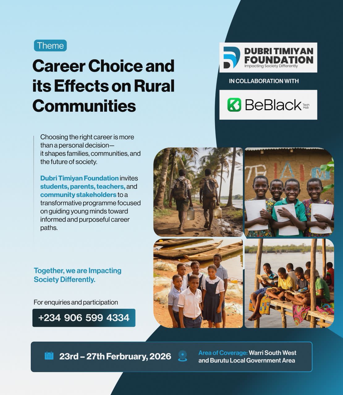 The Dubril Timiyan Foundation has announced a transformative programme aimed at guiding young minds towards informed and purposeful career paths, with a focus on rural communities in Warri South West and Burutu Local Government Area.