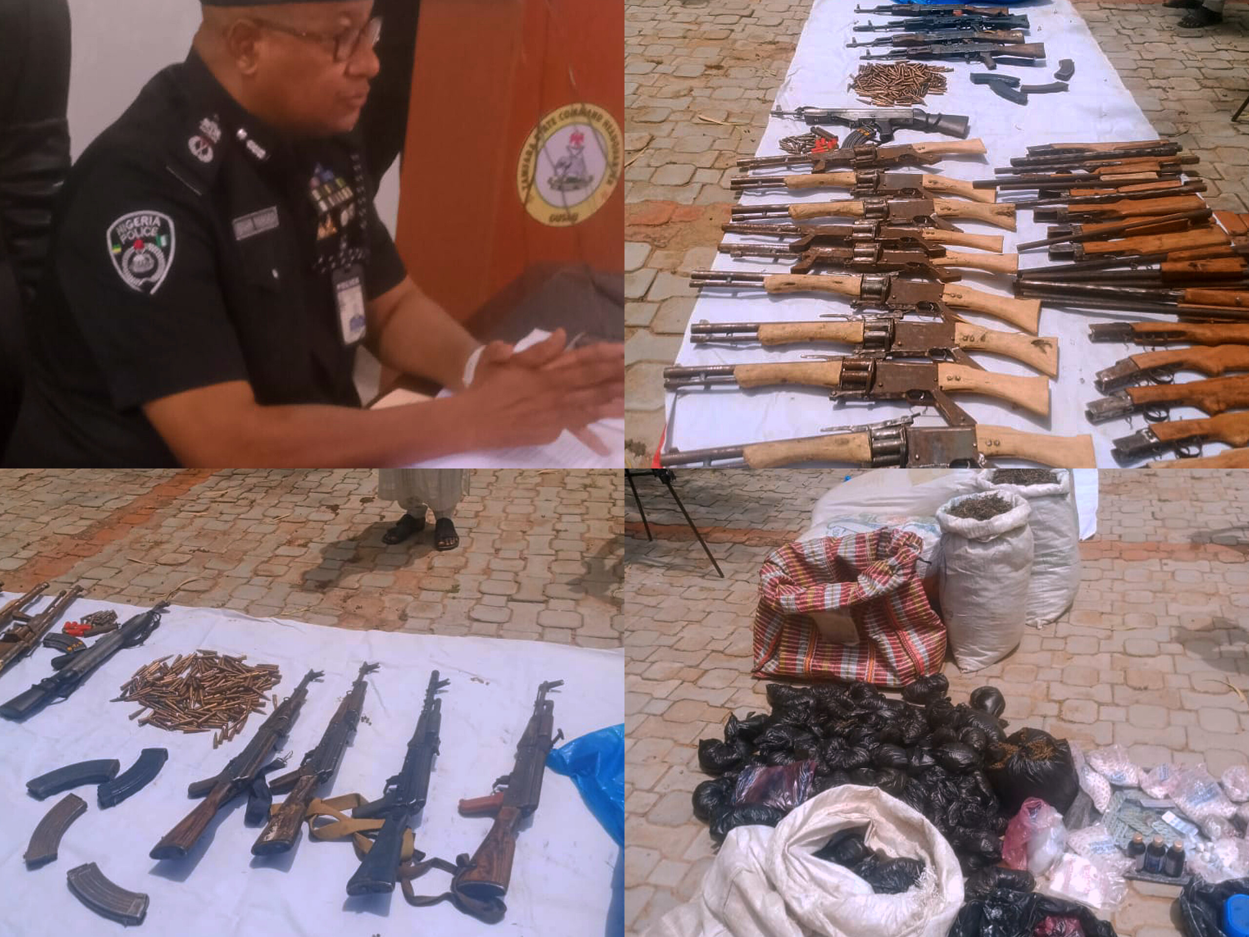 Police uncover arms concealed in a lemon sack, 9 sack of Indian hemp and arrested bandit